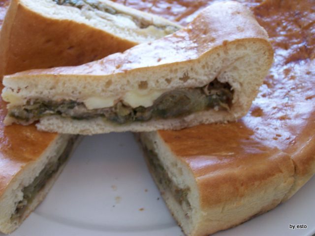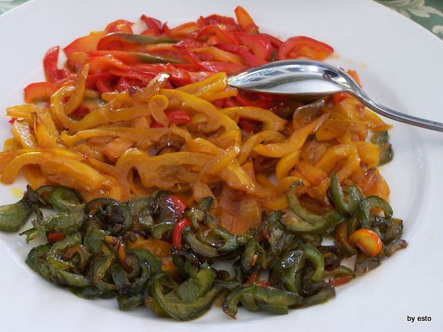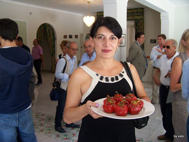 I pepauli rossi, peperoni rotondi rossi non piccanti, farciti con pane olive e capperi. Gustosissimi.
