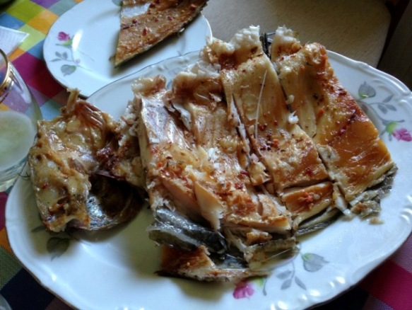 Nonostante tutto il risultato finale era commestibile e mi è servito per accompagnare una interessantissima carta e dei tranci di sgombro rigorosamente affumicati, ed una sorta di bottarga “fresca” anche questa di acqua dolce.