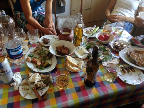 L’accoglienza in casa di una famiglia locale è buona, e subito , sul tavolo, saltano fuori “prelibatezze”, a dire il vero improbabili, che ci vengono offerte in segno di affetto, rispetto, ospitalità.