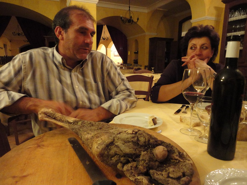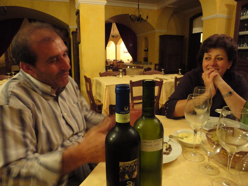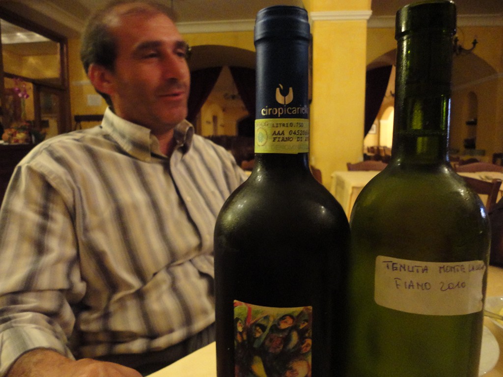 Per la cronaca : abbiamo sentito anche il Fiano di Ciro e, chiariamoci, senza nessun intento di giocare partite straperse in partenza…il mio (quello del contadino, fatto “con i piedi”, in tutti i sensi). Sui mugliatielli e sul prosciutto di montone, abbiamo tentato con l'”Aglianico di Baal” 2009, bel vino ma sui nostri piatti un tantino in affanno…forse Tecce..