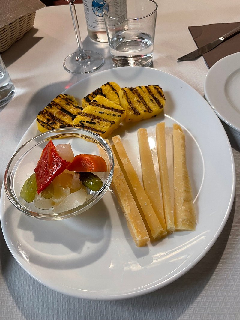 La sopressa con polenta racconta la cultura contadina con una fetta morbida, aromatica, sostenuta dalla dolcezza della farina di mais. Il lardo con crostini punta sulla scioglievolezza e sulla sapidità calibrata, mentre i formaggi stagionati con sottaceti lavorano sul contrasto tra grassezza e acidità. Sul versante marino, le sarde in saor mantengono la classica alternanza dolce-agro, con cipolla stufata e uvetta a dialogare con la struttura del pesce. Il baccalà mantecato, montato con precisione, esprime una tessitura fine e omogenea, priva di eccessi oleosi. Nei primi piatti la pasta diventa veicolo identitario.