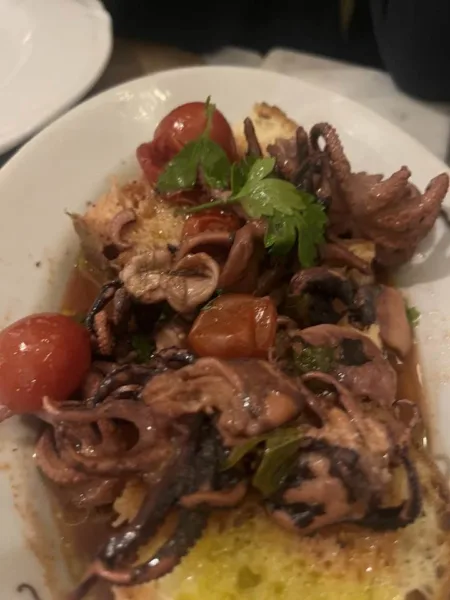 Buonissimi quindi lo scarpariello, la pasta e patate e, per me un inedito, capellini con fagioli bianchi, saporiti oltre ogni aspettativa. Su prenotazione anche la pasta e fagioli del questore, ricca di frutti di mare e servita in una pagnotta di pane cafone.