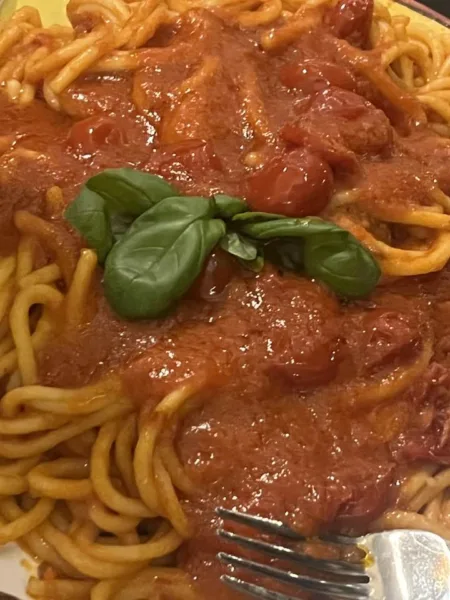 Ma è molto buono pure un semplice spaghettone al pomodoro, preparato col piennolo o col corbarino.