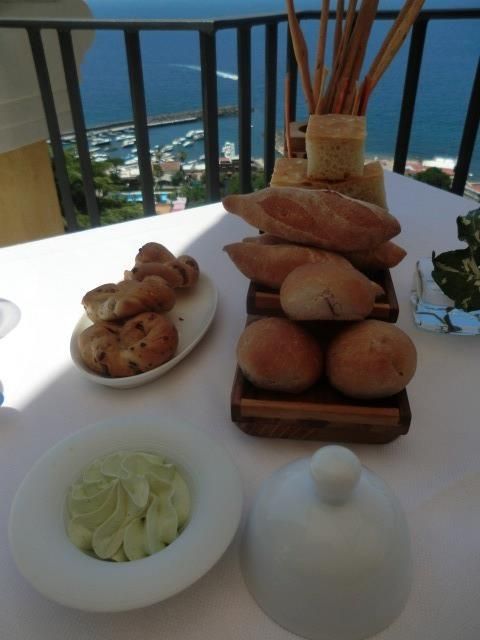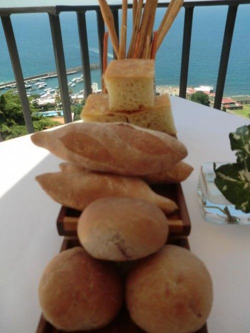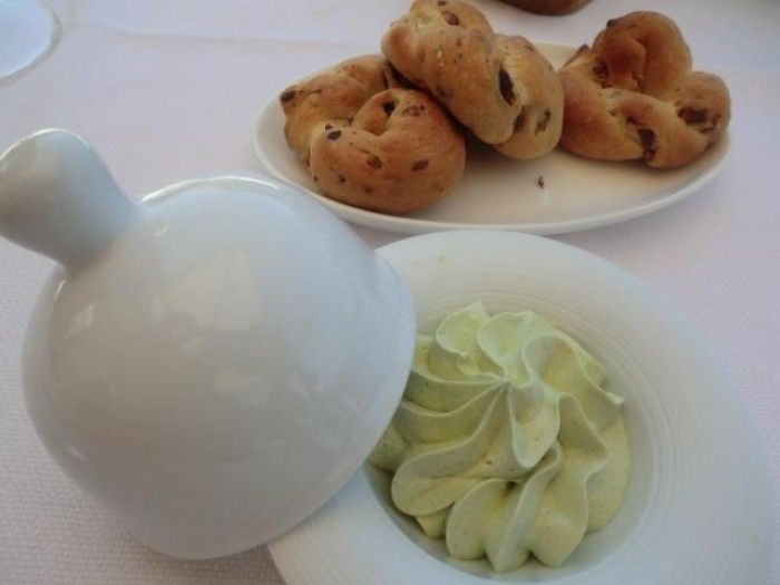 Pane, grissini, taralli napoletani e burro al basilico sono l’altro biglietto da visita.