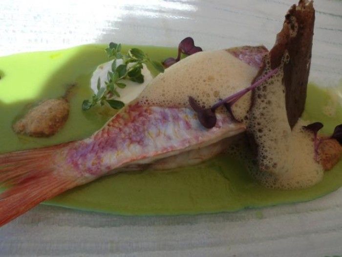 Un passo in più la triglia, grazie alla complessità e all’inyensità dei ricci di mare che rende vana la presenza della caciotta. Un elemento magari da togliere in questo piatto che ci fa tuffare a mare.