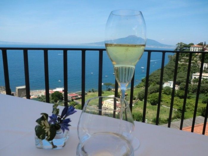 Siamo in un albergo storico, a conduzione familiare, con una vista mozzafiato sul Vesuvio, Napoli e su Ischia. Il Benevenuto in terrazza è un piccolo repertorio di classici napoletani, a cominciare dalla pallina fritta di provolone del monaco passando per le altre sfizioserie del mare e dell’orto.