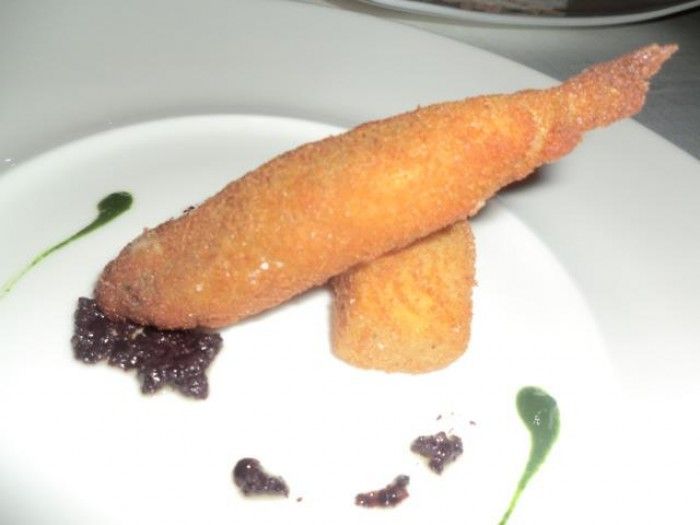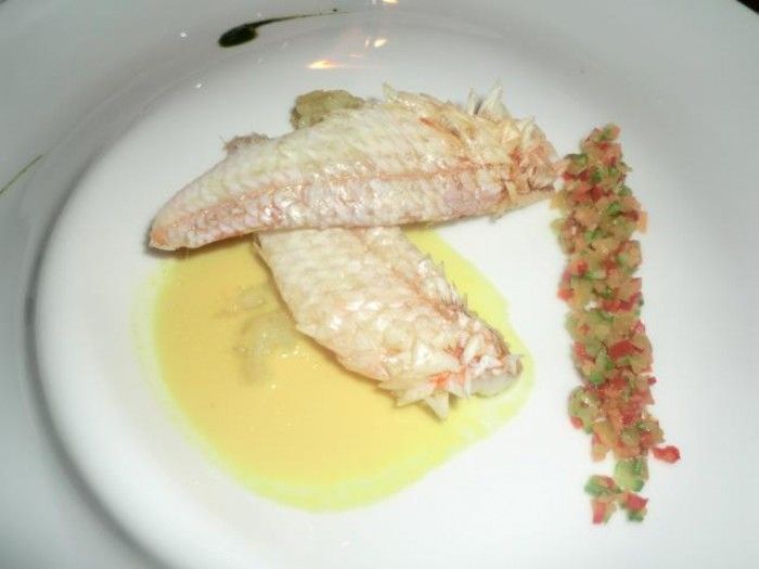 Questa triglietta per esempio nasce da una esperienza spagnola, viene spaccata e poi fritta e presentata in un rinfrancante guazzetto di freschezza a cui si aggiunge la croccantezza della pelle. Più semplice di così si muore.