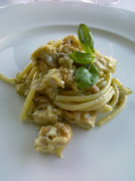Grande primo della tradizione campana pasta più pesce azzurro (leggi spaghetti con le alici). Cottura della pasta semplicemente da manuale, il pesce cammina con la spinta del limone ed è ingentilito dal finocchio. Da mangiare nella zuppiera.