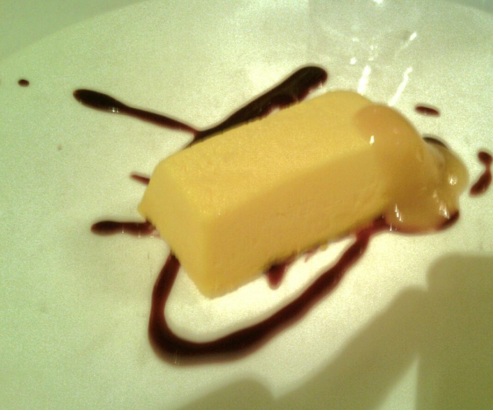 O ancora un omaggio al “Latte in piedi” rivisto con gli occhi contaminati delle nuove generazioni, abituati ai dolci anglossassoni; nasce così la Cheesecake bolognese, un lingotto di crema allo stracchino con riduzione di lambrusco, polvere di frolla e confettura di pere acida.