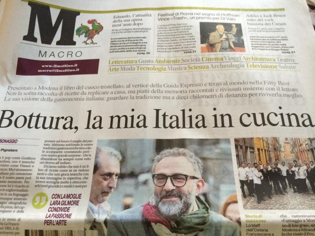 Vieni in Italia con me è il libro di Massimo Bottura da regalare a Natale 26/10/2014 2.6 MILA LETTURE Il libro di Massimo BotturaOggi sul Mattino una pagina dedicata al libro di Massimo Bottura e alla straordinaria avventura della Francescana di ModenaLibro di Massimo Bottura