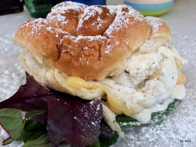 Infine la brioche con gelato stracciatella e crema pasticcera.