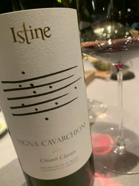 Si tratta di vign giovani esposte ad Est a 500 metri circa nel comune di Gaiole. Sangiovese in purezza, lavorato prima in cmento e poi in botti grandi confermando uno stile aziendale che rifiuta il legno invasivo in stile anni ’90.