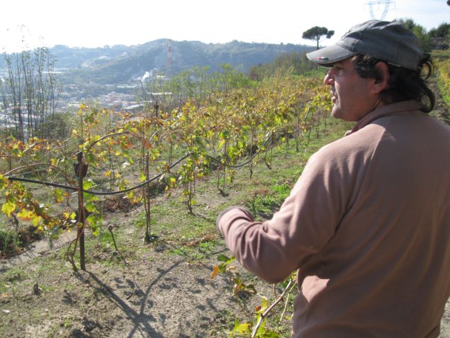 E’ vero. Respira, tira su, questo è ossigeno allo stato puro, ha un sapore difficile da trovare là sotto. Ho terminato di raccogliere il 2 novembre scorso. Prima la falanghina, il 30 e il 31 ottobre, poi il per ‘e palummo. Al di là di quel muro c’è il Parco degli Astroni, un posto magnifico, per niente valorizzato; un bosco naturale tra i più vecchi d’Europa. Qualcuno ancora oggi vi s’intrufola dalle mie vigne a caccia di funghi. E qualcos’altro.