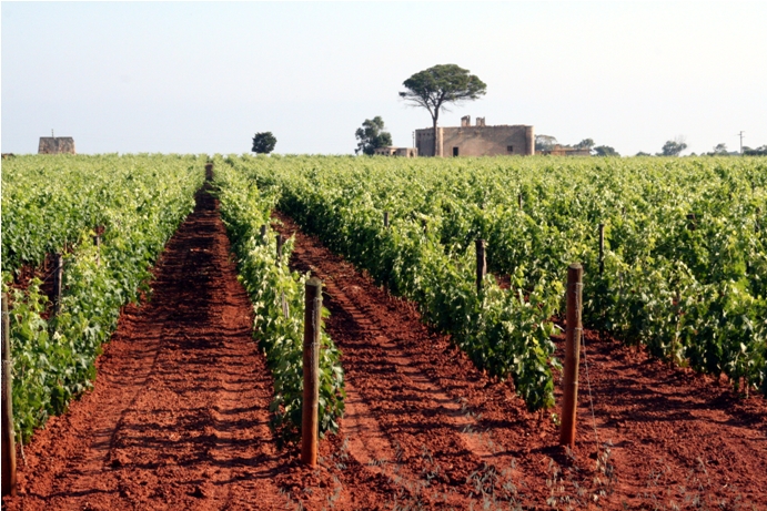 E’ una proprietà questa molto vasta, come accade sovente in Puglia, di 630 ettari coltivata ad oliveto, ortaggi, seminativi e vigneto e formata da tre corpi aziendali: Iore a San Pancrazio Salentino; Flaminio a Brindisi e Castel Serranova a Carovigno. Complessivamente la porzione terriera vitata raggiunge i 170 ettari. Nel cuore dell’azienda esiste una torre di difesa Saracena datata XIV secolo, intorno alla quale tra il 1600 ed il 1800 si è sviluppato un complesso di fabbricati rurali disposti secondo la classica tipologia delle masserie pugliesi, ancora oggi adibiti a centro aziendale e dimora dei proprietari.