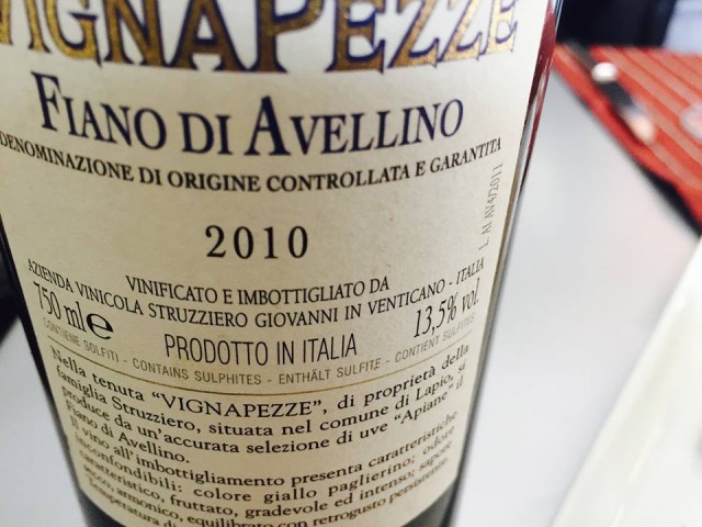 Si diceva ieri del grande piacere regalato dall’Irpinia quando si decide di stappare vecchie bottiglie base. Ci è capitato con il Fiano di Avellino 2010 di Masseria Murata e la storia si ripete, manco a farlo apposta con lo stesso millesimo, con il Vigna Pezze di Mario Struzziero. Si tratta di un fondo di Lapio coltivato direttamente da questa antica famiglia di vinificatori a Venticano dal quale si ricava ormai questo storico cru che riserva sempre incredibili sorprese.