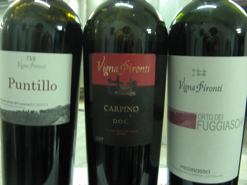 Puntillo Lacryma Christi rosso 2009 (80% piedirosso, 20% aglianico) , lavorato solo in acciaio, esprime un bel naso di frutti rossi fragranti, tocchi cinerei e minerali, note sottili di violetta, in bocca è sottile, con tannini discreti e buona freschezza. Carpino Lacryma Christi rosso 2007 è vincitore del premio Amodio Pesce 2011 che si svolge ogni anno in occasione della manifestazione Vesuvinum.