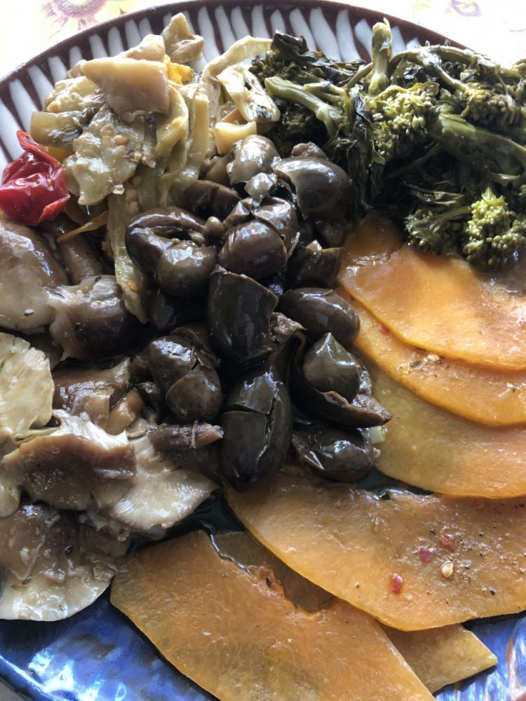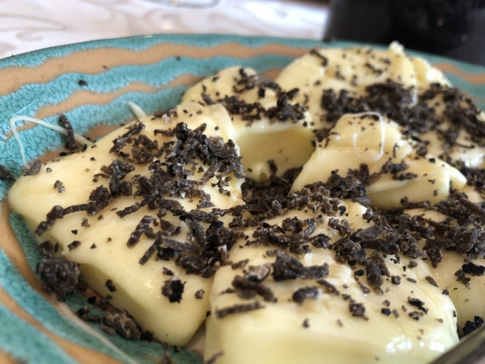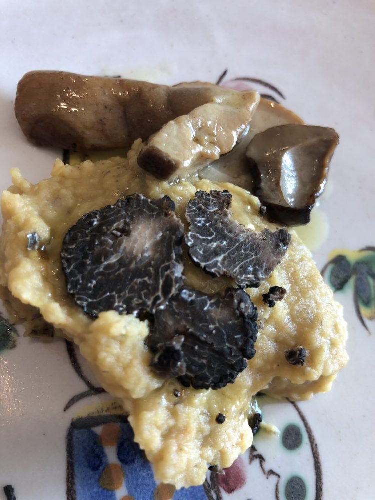 L’ antipasto spazia dalla purea di ceci con porcini e tartufo, ai salumi (ottima la soppressata), ai sottoli (chiodini e zucca doppio slurp), e poi ancora caciocavallo alla brace con tartufo, frittelle di chiodini e polpettine varie, una gustosa trippa coi fagioli di Controne, tutto buonissimo, sapori non omologati da processi produttivi industriali.