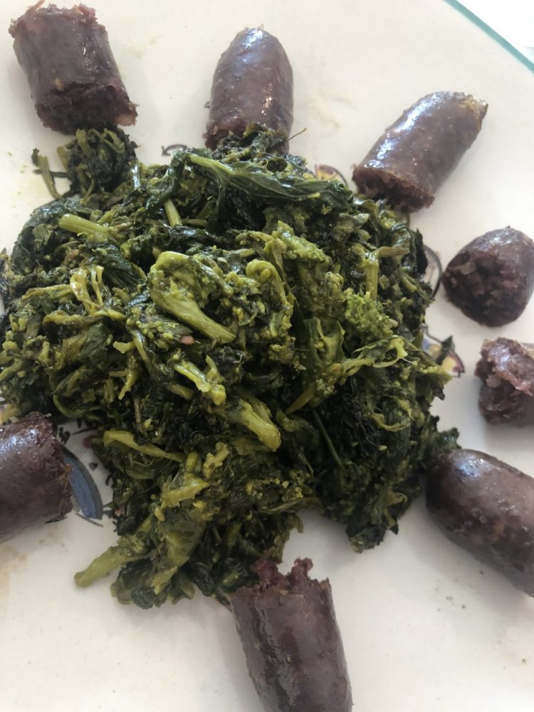 Secondo? SECONDI!!! Il cotechino è cotto sotto la cenere del camino e sposa i broccoli, il coniglio stufato, lentamente, sempre nel camino, mentre il cinghiale è tirato al vino, un aglianico di Taurasi che troverete anche nel calice. Finito? Macchè.