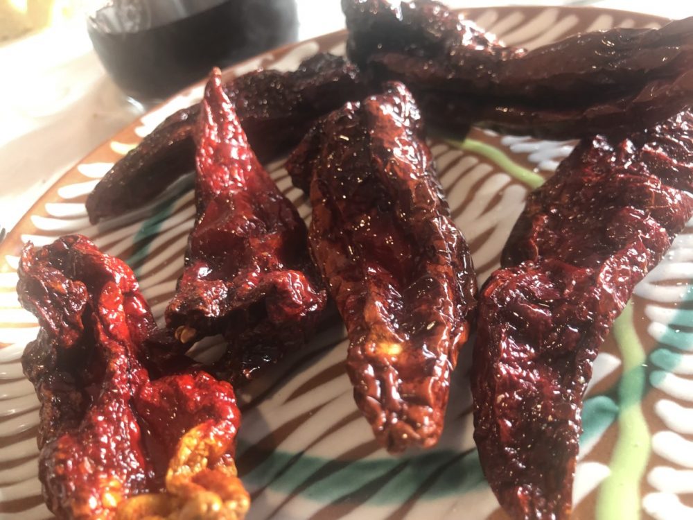 C’è il peperone crusco e le patate fritte coi porcini. E ancora le castagne, le nocciole, l’uva corniola sotto spirito, il pasticciotto, gli struffoli, gli infusi di Mara, tra cui uno strepitoso nocillo.