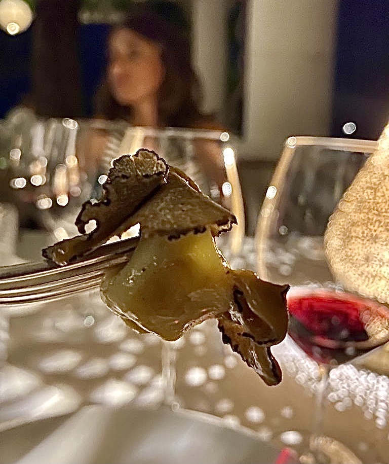 I sapori campani giocano la carta dei “Cappelli di genovese d’agnello Laticauda con fonduta di provola di Agerola e tartufo nero”, voluttuosi e goduriosi, ma equilibrati e senza eccessi. La Toscana risponde con il Brunello di Montalcino 2016 de Il Marroneto: un rosso di grande eleganza, dal sorso vibrante e longilineo, che si distingue per una sottile nota mentolata e un sottofondo di terra bagnata.