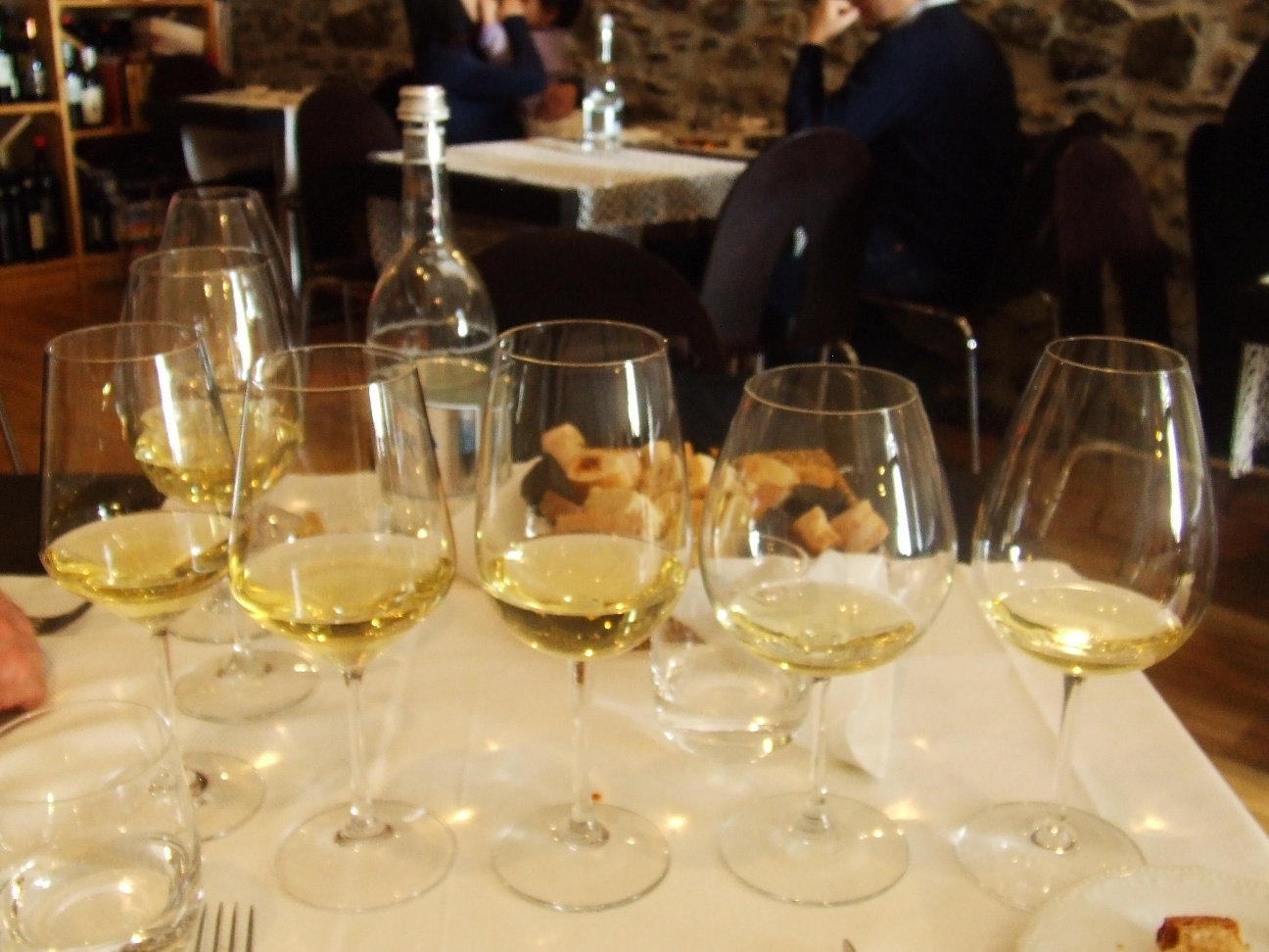 In abbinamento a questi piatti Mario Riccardi ci ha presentato una verticale di Fiano di Avellino di Guido Marsella, che comprendeva i millesimi 2008,2007, 2006 e 2005, un Castello di Jesi Classico Riserva Villa Bucci 1999 e un moscato passito siciliano di Solunto. Tutti vini veramente all’altezza di un pranzo così sontuoso, a parte l’annata 2007 di Marsella leggermente al di sotto delle aspettative.