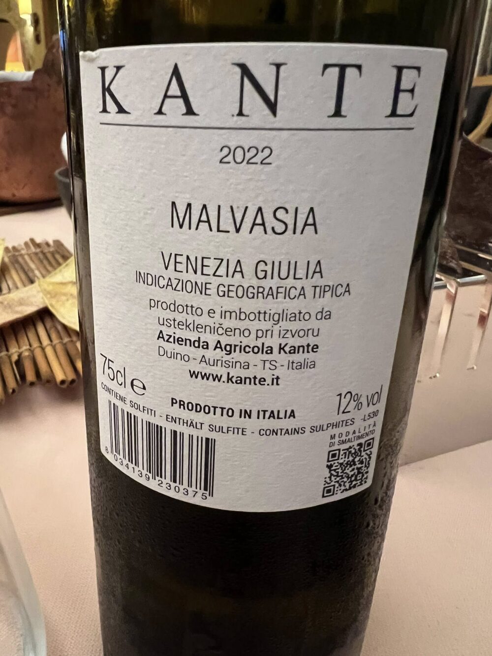 Alla Subida a Cormons Mitja Sirk ci fa bere bene e con passione. Quando nel piatto tocca al tubetto con il midollo abbina questa fantastica Malvasia, il grande classico di Kante che evoca salsedine e jodio. Poco più di tre anni di attesa per un bianco friulano di carattere, freschissimo, lungo, appagante.