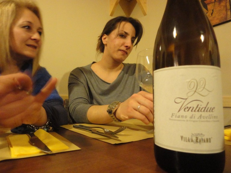 Nello specifico, si rompe il ghiaccio con un aperitivo a base di salumi (ottima la soppressata di Carife), formaggi(commovente il pecorino bagnolese) e polenta innaffiati da un freschissimo spumante Ripa Bassa metodo classico di Villa Raiano proveniente