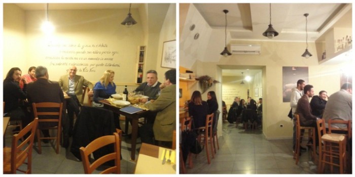 Eravamo lì per la serata organizzata dalla cantina Villa Raiano che presentava alcuni suoi vini. Sono tutti giovanissimi, i ragazzi della vineria. Carmine Pacilio, cuoco e titolare, viene “dalla scuola”di Gioì Della Bruna, chef dello Sporting Club di Candida prima e di Locanda Carifilia dopo. Ed è proprio allo Sporting che Carmine ha appreso la tecnica di cucina da Gioì, per poi assumerne la responsabilità quando ci fu l’apertura della Locanda. A coadiuvarlo in sala ci sono il fratello Ciro e l’amico Thomas Taccone, diplomato scuola alberghiera di Avellino. L’offerta del locale, sia per il food che per il beverage, spazia tra la notevole disponibilità di prodotti del territorio ma anche su alcune chicche di livello regionale e nazionale.