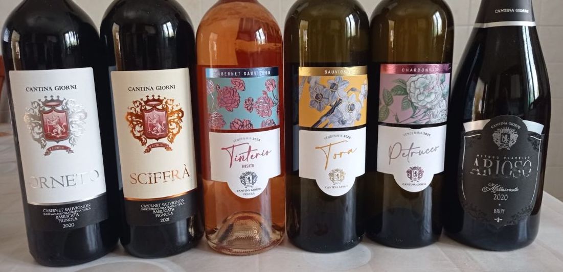 La Cantina Giorni nasce a Pignola in Basilicata nel 2009 per volere di Nicola Maria Patrone, seguendo le orme del nonno omonimo che già all’inizio del ‘900 aveva piantato barbatelle di Cabernet Sauvignon in questo luogo. Insieme alla cantina è stata costruita la Dimora Storica Giorni a cinque stelle, all’interno della quale esiste il Ristorante Botros Hanna ed una Spa ed a breve distanza c’è anche l’esclusivo Golf Club Giorni. Tutto questo è posizionato ad 850 metri di altezza nel Parco Nazionale dell’Appennino Lucano. Inoltre sempre della stessa azienda nel Friuli al confine con la Slovenia si allevano vitigni di Chardonnay e di Sauvignon Blanc.