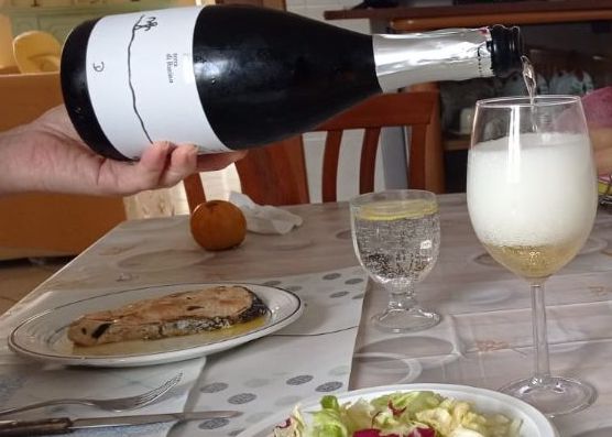Acino d’Alento Vino Frizzante Bianco Nature, da uve di Fiano. Rifermentazione naturale in bottiglia sui lieviti. Presa di spuma novembre 2023. Non filtrato. Pressione 3 bar. Prezzo finale di 16,00 euro.