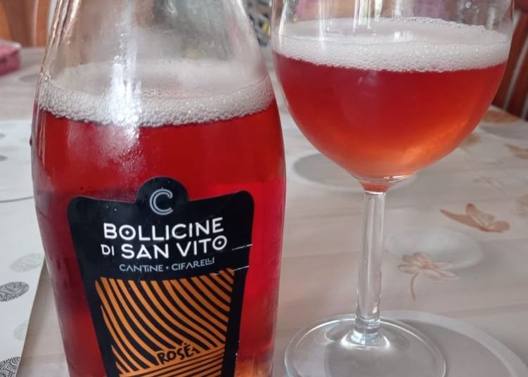 Bollicine di San Vito Vino Spumante Brut Rosé Metodo Martinotti. Primitivo al 100% affinato per 60 giorni sui lieviti. Alcolicità di dodici gradi. Prezzo finale di 15,00 euro.