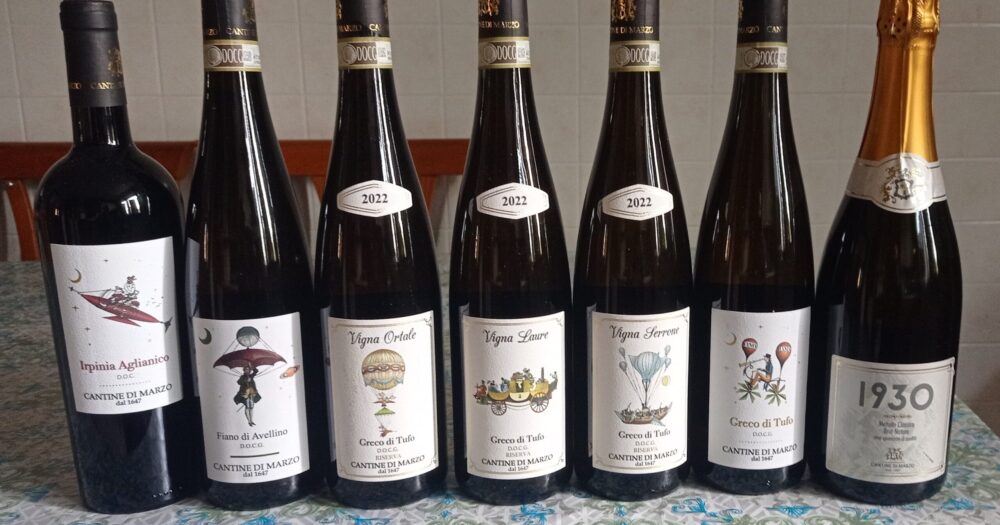 La famiglia Di Marzo ha incominciato ad interessarsi di vino fin dal lontano 1647 con il capostipite Scipione, mentre l’attuale titolare aziendale è Ferrante Di Somma, il quale continua imperterrito a produrre queste meravigliose bottiglie con la collaborazione dell’enologo Vincenzo Mercurio, di cui in questi giorni ho potuto assaggiarne in anteprima cinque di nuove annate di solo Greco, di cui due riserve ed una di spumante.