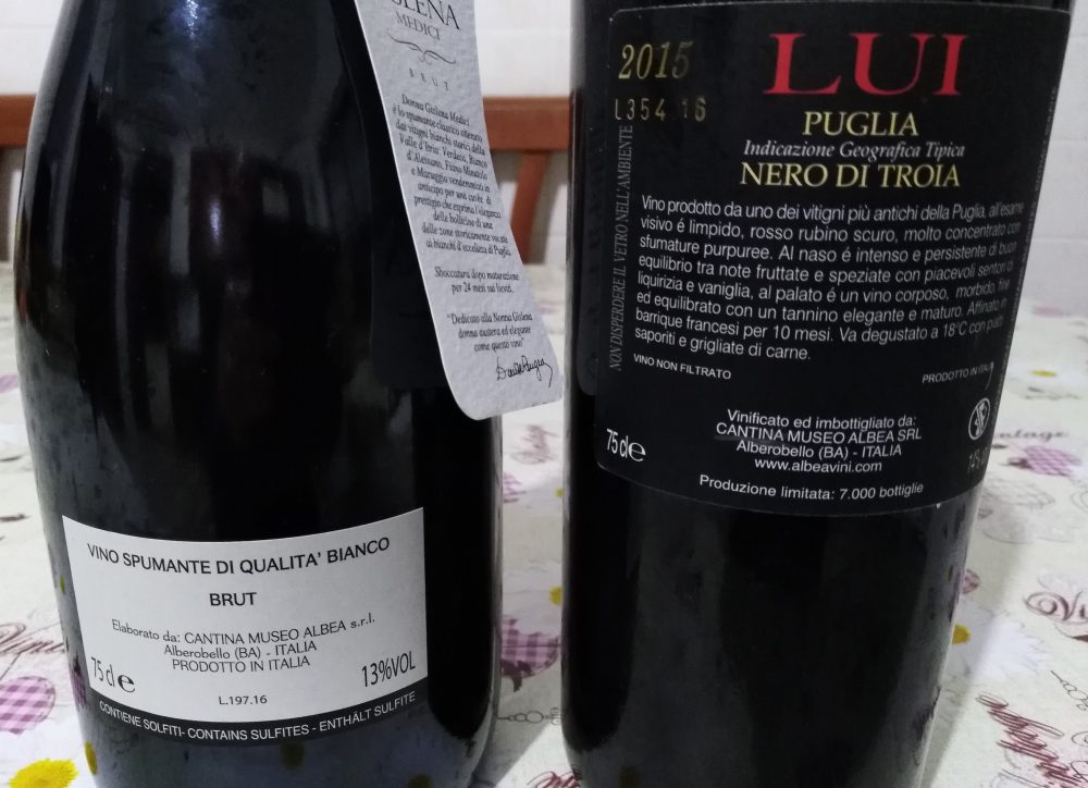 Eterogenea composizione ampelografica di minutolo, bianco d’alessano, verdeca e maruggio, tutte varietà coltivate in Valle d’Itria che è poi l’unico scrigno bianchista di tutta la Puglia. Affinamento sui lieviti per due anni. Elevazione in bottiglia per cinque mesi. Tasso alcolico di tredici gradi.