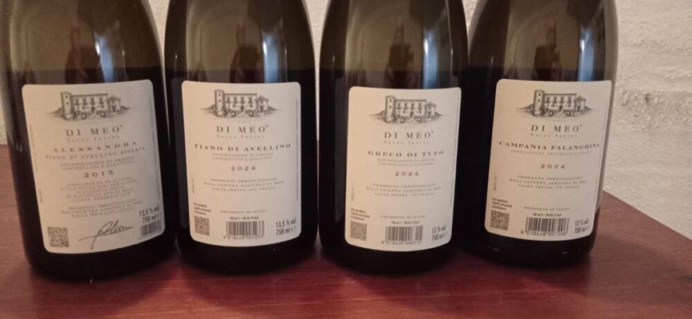 I fratelli Roberto e Generoso Di Meo di Salza Irpina, titolari dell’azienda a loro intestata, sono molto affiati e, soprattutto, sono persone molto competenti per quanto riguarda il settore vitivinicolo. I loro vini territoriali sono oggetto di gratificanti e costanti riconoscimenti a livello nazionale ed internazionale ed io mi pregio di potere assaggiare sempre le nuove annate appena escono sul mercato. Quattro le etichette di soli vini bianchi che ho testato nel frangente, di cui tre del 2024 ed una del 2015.