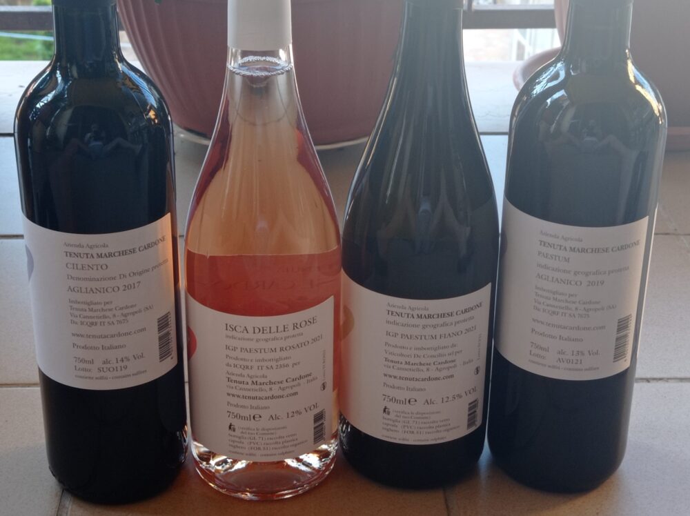 In attesa di compiere il mio consueto e periodico giro per le aziende cilentane, che stanno completando l’imbottigliamento delle nuove annate, mi sono imbattuto in quattro etichette (un bianco, un rosato e due rossi) di una minuscola e poco conosciuta impresa di Agropoli: Tenuta Marchese Cardone, attiva già dall’inizio degli anni ’70.