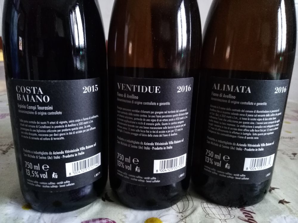 Alimata Fiano di Avellino Docg 2016. Dieci mesi di maturazione in tini di acciaio ed elevazione in boccia per quattordici mesi. Tenore alcolico di tredici gradi. Prezzo in enoteca intorno ai 20,00 euro. A differenza del Fiano Ventidue, le cui uve sono allevate nei comuni di Candida, Lapio, Montefredane e San Michele di Serino, qui le uve provengono dal solo e vocato areale di Montefredane.