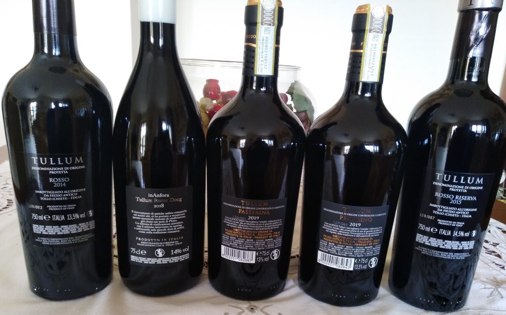 InAnfora Tullum Rosso Biologico Docg 2021. Montepulciano al 100%. Uve raccolte a metà ottobre. Vinificazione in anfore di terracotta. Affinamento sulle bucce per undici mesi. Gradazione alcolica di quattordici e mezzo. Prezzo finale di 25,00 euro.