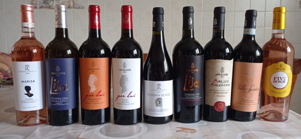 Tra queste spicca quella di Leone de Castris di Salice Salentino, che occupa sicuramente una prestigiosa posizione di primo piano in ambito regionale ma anche nazionale, perché fa parte della storia pugliese e salentina fin dal 1665, produce un’alta quantità di ottime bottiglie ed è proprietaria di 300 ettari vitati. E poi, come vedremo dopo, è considerata la prima azienda che ha prodotto il vino rosato in Italia.