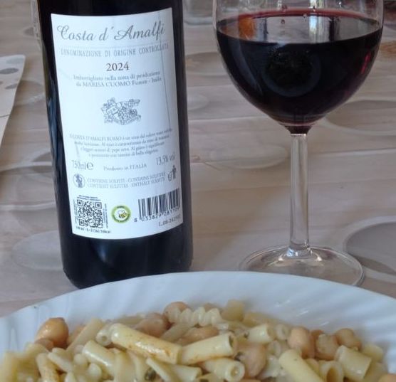 Costa d’Amalfi Rosso Doc 2024. Stesso blend del rosato. Maturazione in acciaio, legno e vetro. Gradazione alcolica di tredici e mezzo. Prezzo finale di 20,00 euro.
