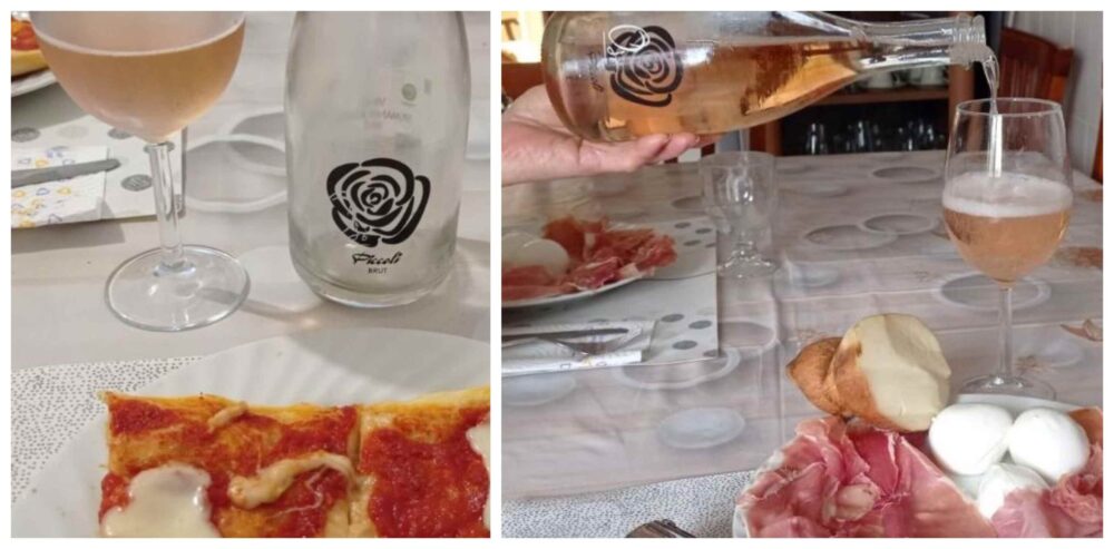 Finale appagante. Spumante provato su una pizza in teglia ed un piatto di prosciutto cotto e crudo conmozzarella e provola.