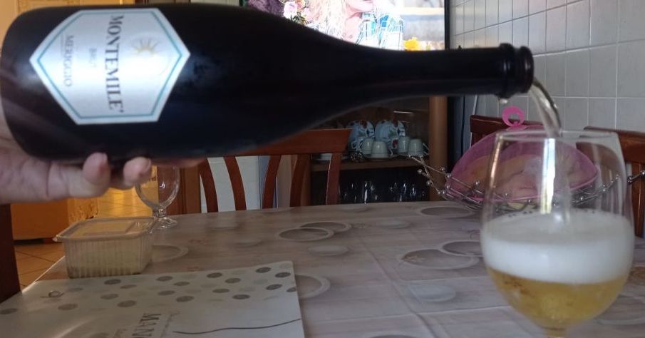Montemilé Vino Spumante Bianco di Qualità Brut. Metodo Martinotti. Coda di Volpe in purezza. Presa di spuma in autoclave. Tasso alcolico di dodici gradi. Prezzo in cantina di 12,00 euro.