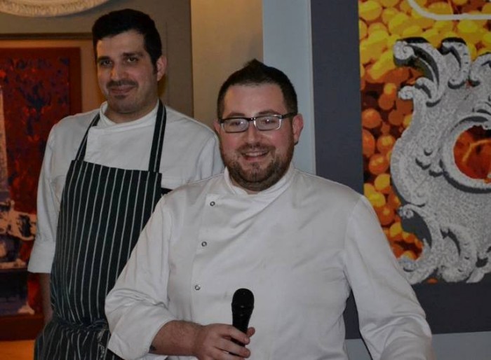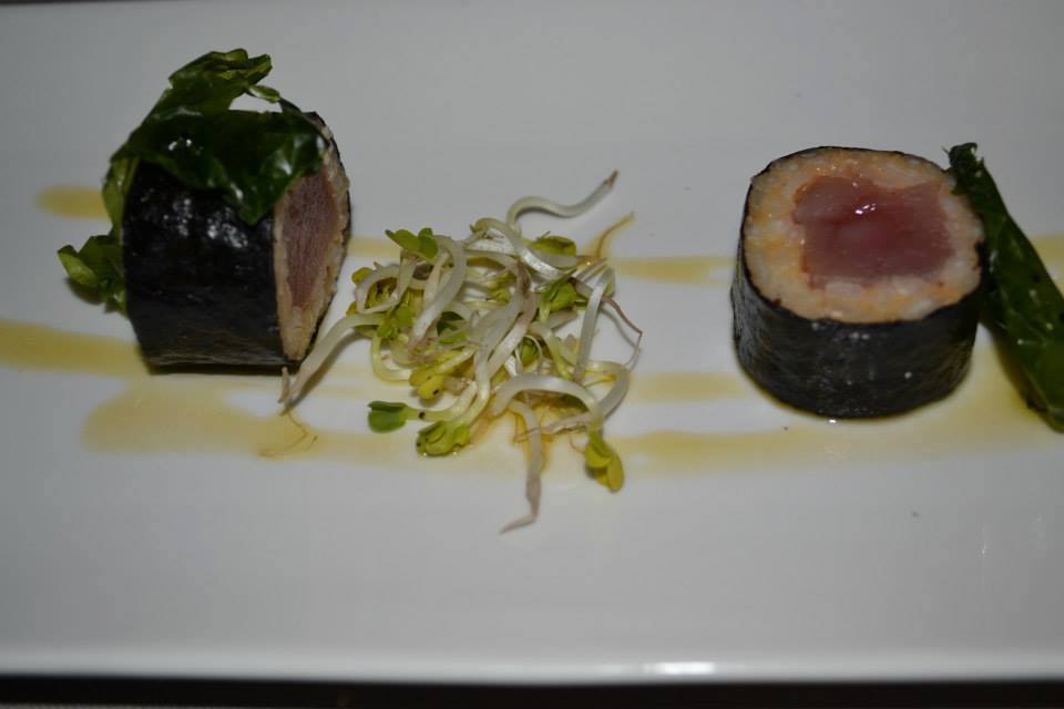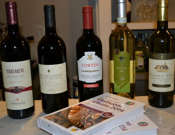 Il menù con gli abbinamenti: CHERCHI GIOVANNI MARIA, Vermentino di Sardegna Doc PIGALVA 2012, accompagnato da Susci a modo mio con alga nori e vialone nano; SURRAU, Vermentino di Gallura Docg Superiore SCIALA 2012, accompagnato da Mousse di gamberi al bicchiere con crema di frutti di mare e spinaci saltati; MURA, Cannonau di Sardegna DOC CORTES 2011, accompagnato da Fregula sarda, trombette nere della morte, scalogno croccante; ANTICHI PODERI JERZU, Cannonau di Sardegna Doc Riserva 2010, accompagnato da Il Porceddu secondo il Brad; CANTINA SANTADI, Carignano del Sulcis Doc Superiore TERRE BRUNE 2009, accompagnato da Bavarese al pecorino.
