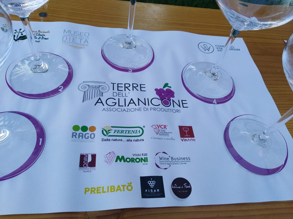 La degustazione di Aglianicone di cinque aziende salernitane si è tenuta a Palazzo Vinciprova di Pioppi alla presenza di un folto numero di appassionati, condotta dalla giornalista enogastronomica Chiara Giorleo. Presenti i relatori Ciro Macellaro Presidente Associazione Terre dell’Aglianicone, Luigi Maffini vicepresidente CVSV, l’enologo Sergio Pappalardo, il Direttore marketing Fertenia Valerio Conza ed il Direttore del Museo della Dieta Mediterranea di Pioppi Valerio Calabrese.