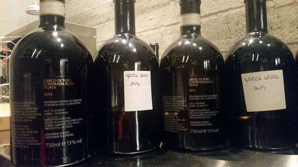 Meno problematica la degustazione dei due Greco anche se, a voler essere pignoli, meriterebbe un ritorno a parte perché dopo sei Fiano di questa portata la concentrazione inizia a cedere. Le differenze di fondo sono meno evidenti perché in questo caso l’areale è più ristretto, si tratta di due contrade di Tufo: Bussi e Laura (più alta).
