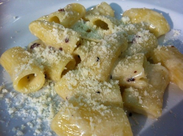 Il Cacio e Pepe della tradizione giudaico-romanesca è rivisitato con un tocco di eleganza, dato dal pepe di Sichuan e dal sapore delicato dell’aglio, che incontrano la sapidità del pecorino romano (mescolando stagionature specifiche), esaltato dalla particolare cottura della pasta, chiamata da Dandini “al chiodo”, che è tolta dall’acqua trenta secondi prima della cottura “al dente” per maggiore dirigibilità. Un piatto ben riuscito e molto gradevole al palato.