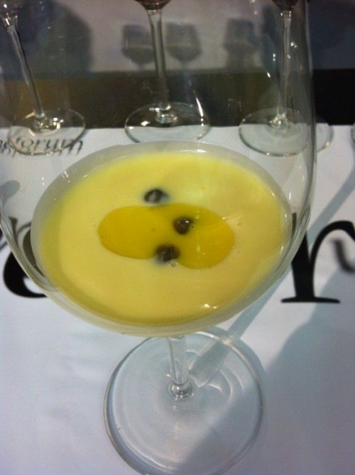 Il dolce finale, gustoso e delicato, è stata una rivelazione, nato da un episodio di vita simpatico dello chef. Perfetto equilibrio dei sapori, in cui lo zenzero richiama una nota di agrume, che contrasta con il salato dell’olio e dei capperi, addolcito tutto dal cioccolato bianco.