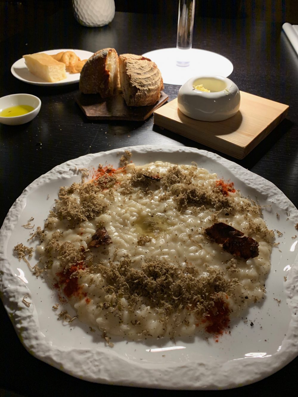 Vitium – Riso Buono mantecato con topinambur, pimenton, tartufo nero e brodo di midollo cotto al bbq
