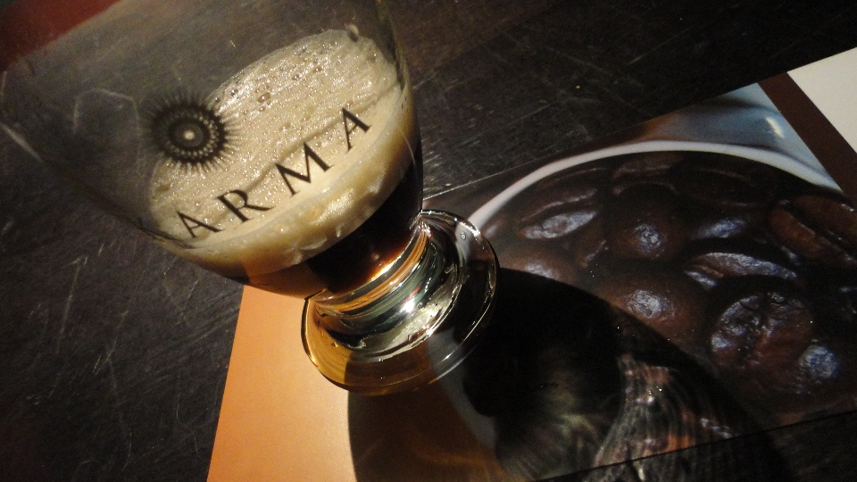 A pompa Na’ Tazzulella ‘e Café Karma, birra forte, dal colore scurissimo e dalla schiuma densa color cappuccino, al naso sentori maltati, di caffè tostato e di cappuccino. Predomina un gradevolissimo odore e sapore di caffè, perché il caffè c’è ed è Passalacqua Harem (consigliato dall’amico napoletano Maurizio De Vito del Morris Beer), aggiunto in chicchi macinati durante il brassaggio e liquido nella fase di bollitura- spiega Mario Cipriano.