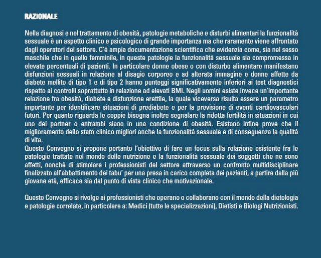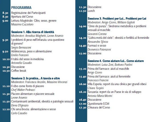 Si prefigge di fare un focus su funzioni e disfunzioni sessuali in relazione al cibo.