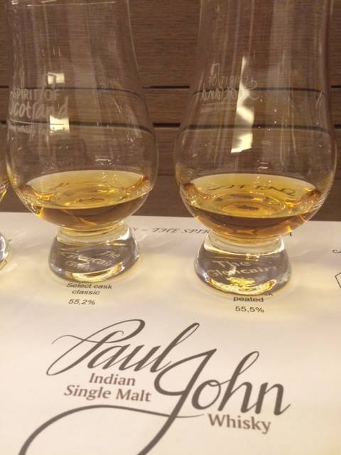 EDIT 46% Single Malt Whisky ha un’essenza torbata e più marina, che sa d’ alga e di sale. La torbatura sottile come un filo di fumo si avverte più in bocca che al naso dimostrando la struttura più intensa senza traccia di pungenza alcuna accompagnata da note dolci e morbide che sono sempre presenti. SELECT CASK CLASSIC 55,2% grado pieno suona come il BRILLIANCE ma tutto in stereofonia. Naso voluttuoso di frutta esotica e agrumi mescolato ad una sottilissima affumicatura che richiama il bacon. Tropicale e caldo anche in bocca non si rivela aggressivo ma suadente. SELECT CASK PEATED 55.5% racchiude in se le diverse sfaccettature di Paul John con evidenti note marine e di tabacco fuse a quelle fruttate e agrumate rese più piccanti dall’affumicatura. Il gusto lunghissimo si apre con ricordi di lime e cedro quasi di bitter e chinotto per far trovare sul finale la dolcezza di un Irish coffee.